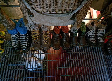Und dann sind da noch die Stiefel… sogar die von Giuseppe Šebesta, dem berühmten Trentiner Dokumentarfilmer und Ethnographen. Noris behält sie alle: „Stiefel sind für mich ein unverzichtbares Werkzeug. Sie sind viel gewandert, sie haben viele Reisen gemacht, sie sind Zeugen eines Zeitalters, eines Jahrgangs. Wenn sie ihre Arbeit getan haben, musst du sie aufgeben, aber sie bleiben hier bei mir, um mir Gesellschaft zu leisten. Ich habe zweihundert Paar, eine Sammelleidenschaft, einige sind echte Sammlerstücke“. Andere sind so abgenutzt, offen, zerschnitten, dass es unmöglich scheint, sie so lang benutzen haben zu können.