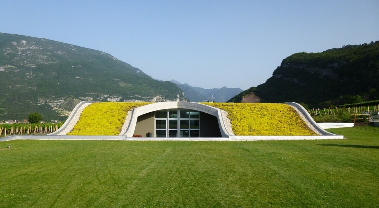 Ein unterirdischer Keller, umgeben von über 450 Hektar Weinbergen an den Hängen des Monte Baldo, dem Garten Italiens, und des Val di Gresta, dem Bio-Garten des Trentino.