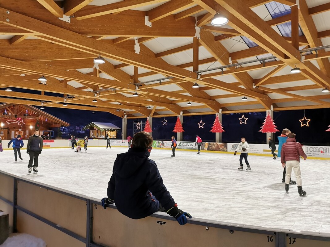 Ein Ort, an dem man sich mit Freunden oder der Familie vergnügen kann, wo man mit voller Geschwindigkeit auf Schlittschuhen durch die Gegend saust und sich in der warmen Bar der Eisbahn eine Pause gönnt, um einen leckeren Bombardino oder eine köstliche heiße Schokolade zu genießen. Worauf warten Sie noch? Sehen Sie sich das Video an und kommen Sie mit!