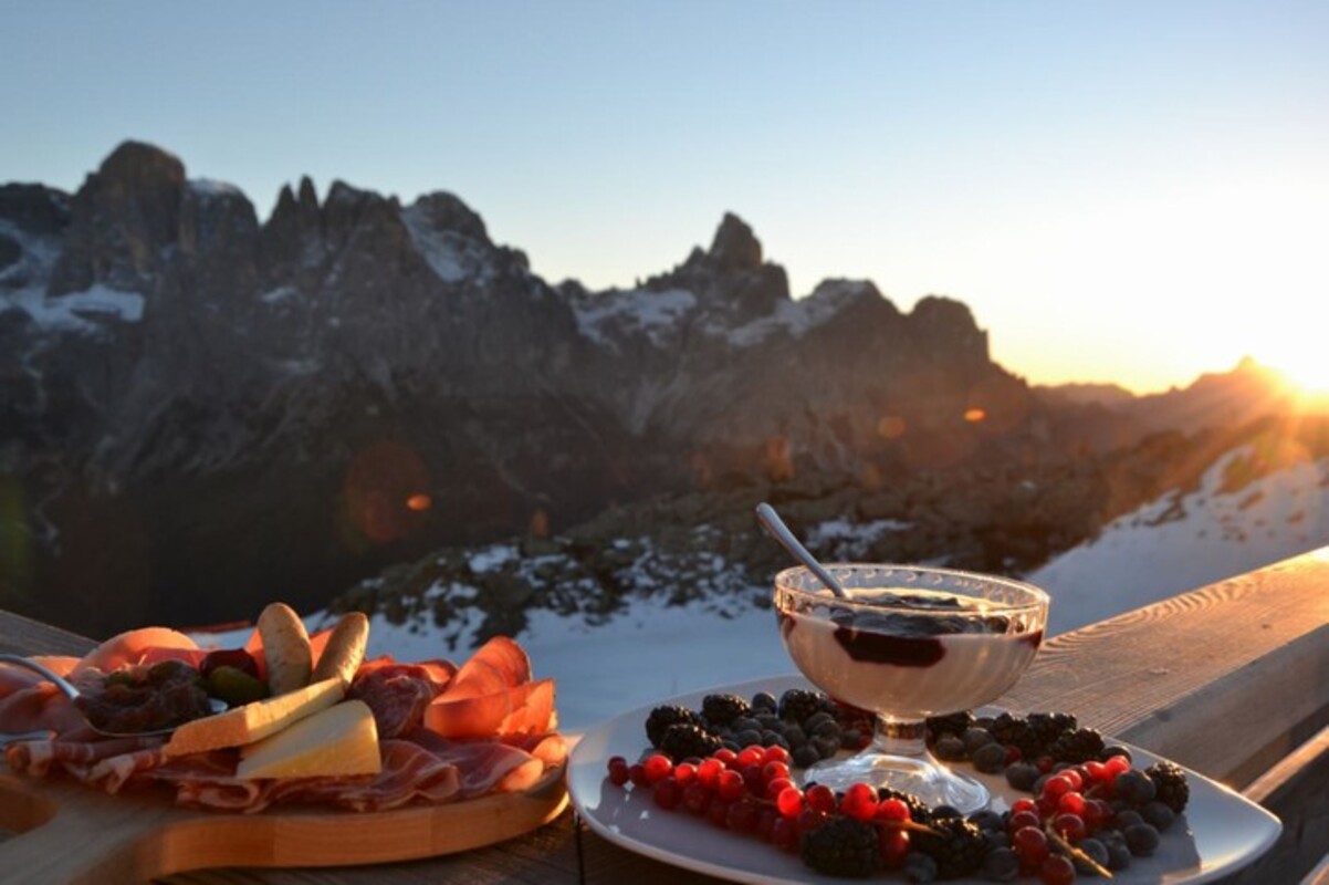 The first sunrise lights on the white peaks, the sparkling air, the immaculate snow and the breathtaking alpine landscape with a rich and delicious breackfast tasting milk, yogurt, fresh bread, apples, honey, cured meat, cheese, eggs, desserts and other typical recipes.