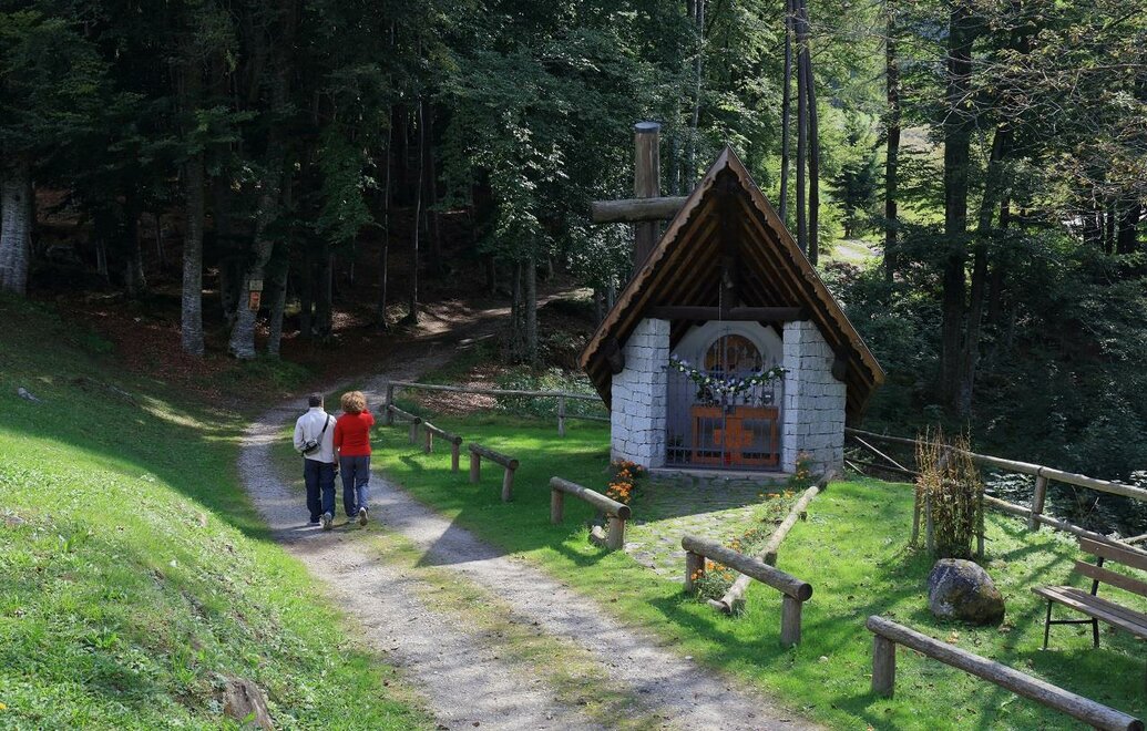 The Rifugio Brigata Lupi di Toscana lies in the relaxing verdant setting of the Altopiano di Boniprati in the Valle del Chiese, and is dedicated to the soldiers who fought heroically in the Giudicarie valleys during the Great War. The refuge is owned by the Scaia family, who built the current structure out of a wooden chalet. Children can have fun in the playground while gourmets can enjoy a plate of polenta carbonera (typical to this area) and blueberry or “radic de l’ors” (wild radicchio) risotto. Open Every day from early May to early November In winter from Christmas to 6 January Open on weekends all year round Before leaving for your hike, always contact the manager to verify the actual opening of the mountain hut Walks The Altopiano di Boniprati is the perfect place for walking enthusiasts and mushroom gatherers (permit required). The nearby Malga Table and the Maress, Clavet and Clef malgas (summer pastures) can be reached along an easy forest track. At the latter a small military cemetery commemorates the fallen of the Great War. Cima Pissola (45 minutes from Malga Table, E) rewards the ascent with its views, but is also recommended for anyone interested in the events of the Great War and (in winter) for ski mountaineers and snowshoers.