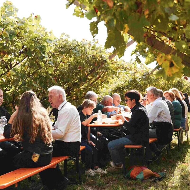 Don’t miss the lunch under the vineyard: traditional dishes served under the Trentino pergolas.