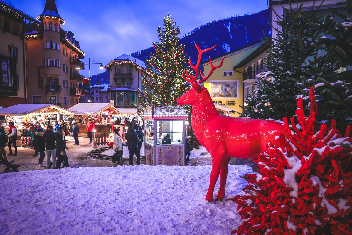 Moena, the "Fairy of the Dolomites", becomes a magical Christmas village with wooden houses, travelling shows, treats and children's carousels