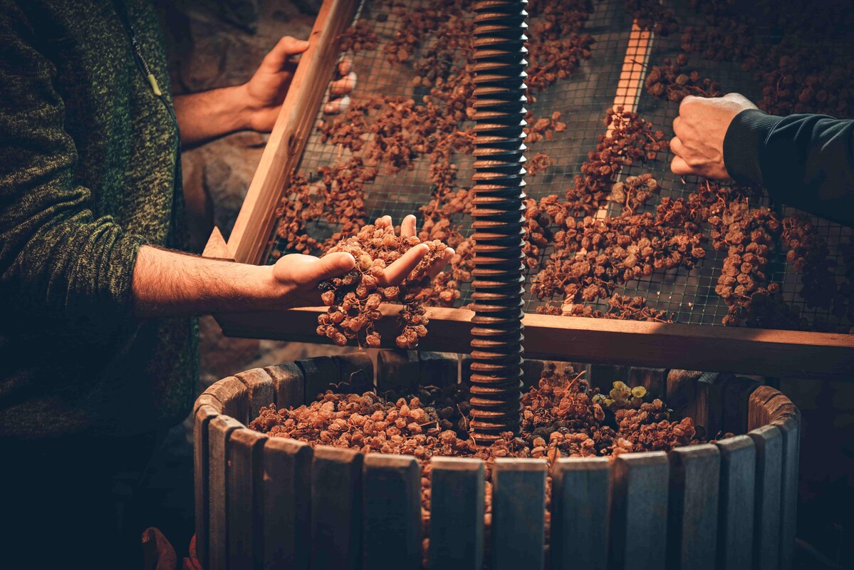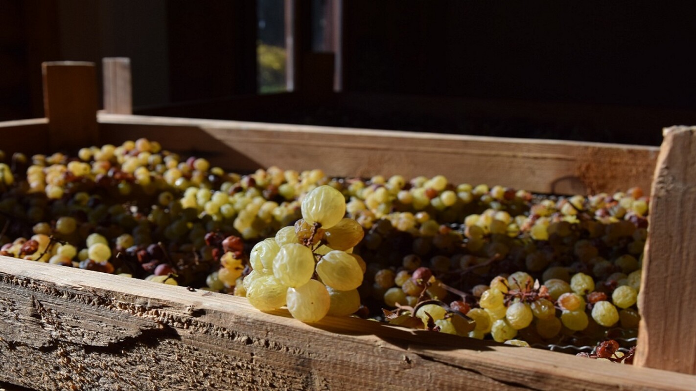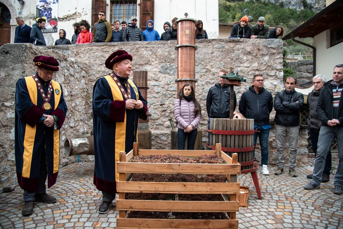 Vino Santo Trentino, a Slow Food presidium, is the result of the work of those who believe that it is still necessary to wait for the right time for good things. Things that tell stories of shared knowledge, past memories, and present passions. A wine born of collective effort and ancient traditions; among these is the rite of Pressing, one of the most symbolically important moments, which takes place during Holy Week and marks the transition from drying on the arèle to winemaking. A ritual that becomes an opportunity for meeting and sharing.