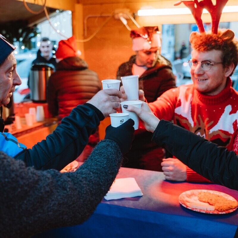 To conclude: a snack with Christmas sweets, chestnuts, tea, and mulled wine.