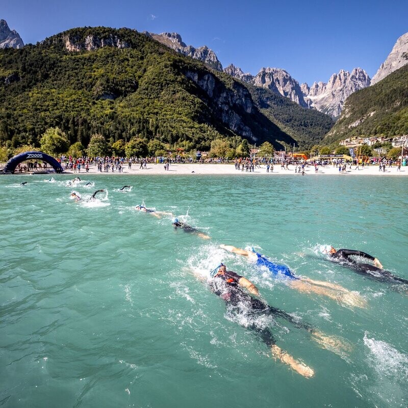 From the lake's cold waters to the technical trails connecting Molveno and Andalo, finishing right on the beach. The mud and rock of the Paganella plateau challenge Europe’s finest athletes.