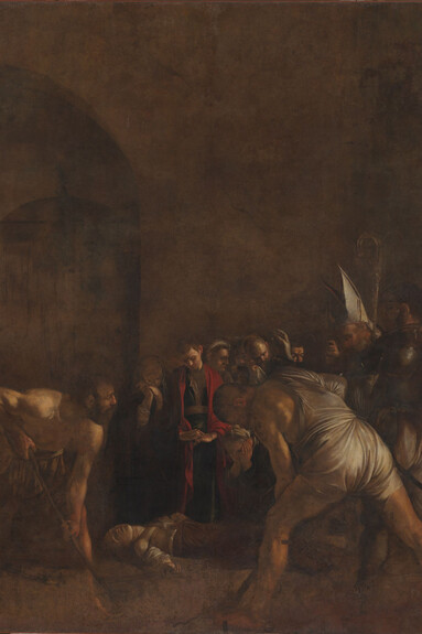 Caravaggio realizzò questo grande dipinto (408 x 300 cm) nel 1608, dopo essere evaso da una prigione nell’isola di Malta. È un’opera del suo periodo maturo, in cui riecheggia il tema cupo della decapitazione, come si evince dai segni sul collo della santa. Un’ossessione per l’artista, su cui pendeva una condanna a morte dello Stato Pontificio per l’omicidio di Ranuccio Tommasoni a Roma nel 1606.