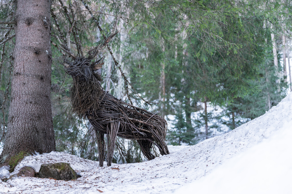 Percorso in mezzo al bosco tra caratteristici masi del passato contadino. Prima di ammirare le Cascate di Valorz ghiacciate, lungo il sentiero troverai delle installazioni raffiguranti gli animali del bosco.