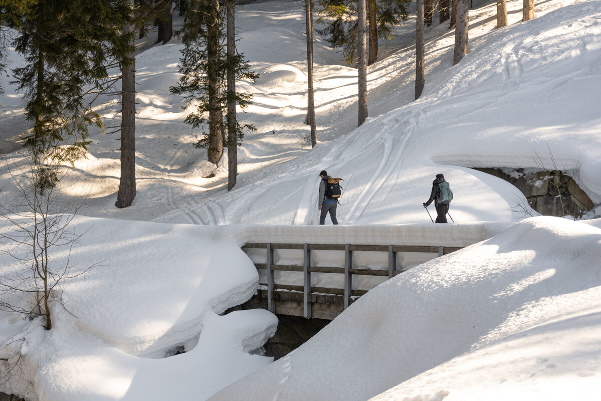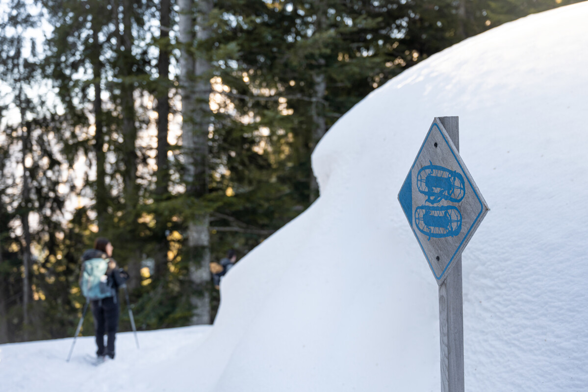 Alle ciaspole pensiamo noi: il noleggio è compreso nel prezzo d'iscrizione all'esperienza.