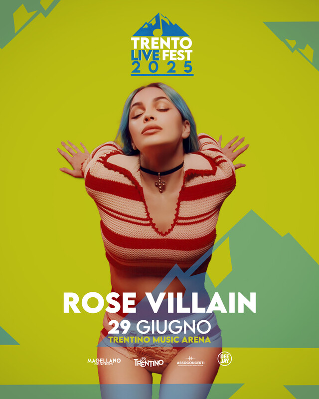 Domenica 29 giugno 2025 imperdibile appuntamento alla Trentino Music Arena (Via di S. Vincenzo, Trento) con la musica di Rose Villain è una cantante, autrice e regista con milioni di stream, nota per la sua visione creativa e il forte impatto sulla scena musicale. Dopo collaborazioni di alto livello, nel gennaio 2023 ha pubblicato il suo album di debutto, Radio Gotham (disco di platino), un progetto personale e innovativo che ha conquistato pubblico e critica, debuttando tra i primi posti delle classifiche italiane e internazionali.