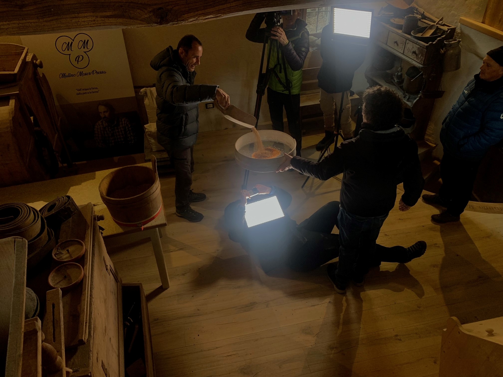 Le telecamere di Melaverde, con la conduttrice Hellen Hidding, sono entrate nel Mulino Moser per documentare la macinazione del grano locale a Km 0, con le mole in pietra originarie di fine Ottocento mosse dalla forza dell’acqua.Attorno al Mulino è così cresciuta una filiera che oggi include diverse attività dove viene regolarmente utilizzata la farina pinetana nella produzione di pane, pasta, pizze e dolci.