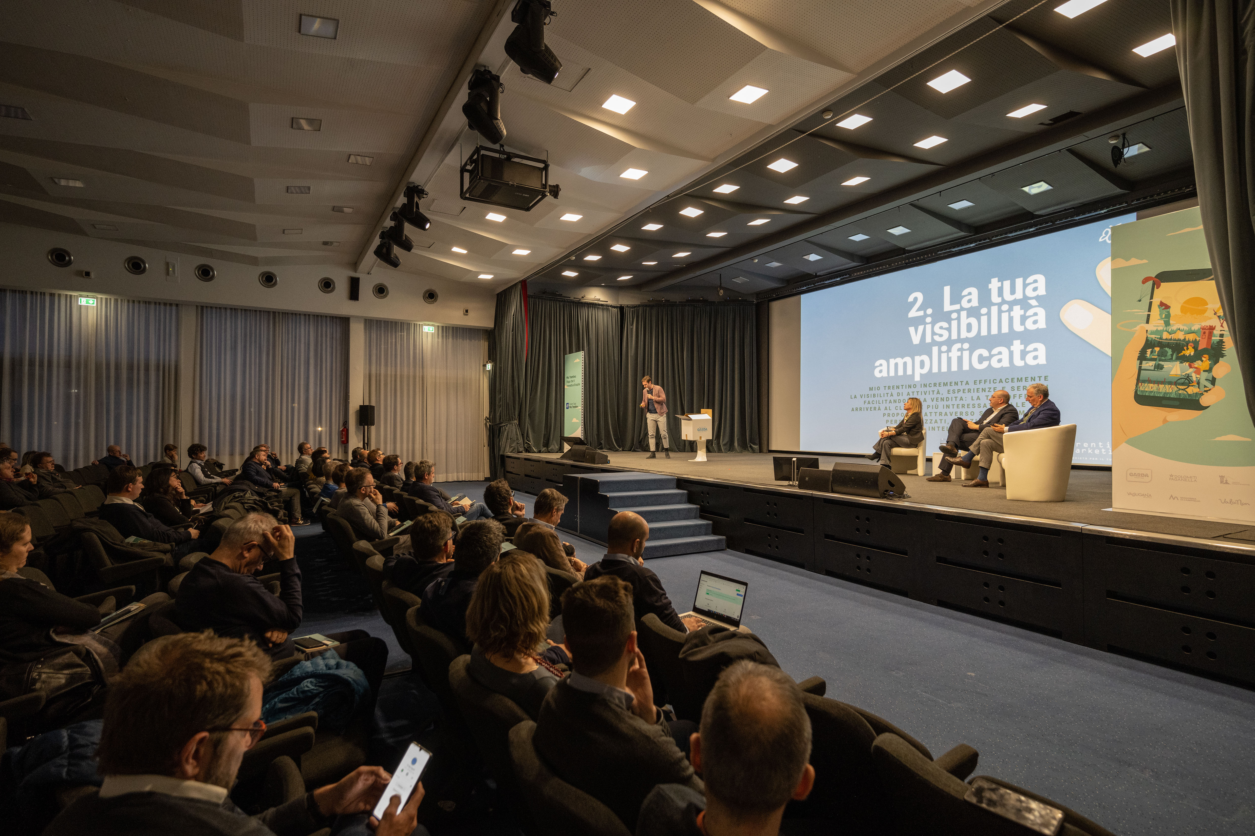 Chiudendo la giornata Maurizio Rossini, amministratore delegato di Trentino Marketing, ha affermato: “La trasformazione digitale è un dato di fatto. Noi possiamo accompagnarla o provare a diventarne protagonisti. Abbiamo scelto, tutti insieme, la seconda strada, più sfidante e difficile senza ombra di dubbio. Ma anche quella che può generare maggiore valore. Abbiamo scelto di intraprendere un percorso che inizia da Mio Trentino, una piattaforma pubblica, aperta, non vocata a generare business, ma volta a creare valore, per i nostri ospiti, per le nostre imprese, per il nostro territorio e la sua comunità. Il soggetto pubblico si è fatto carico dell’infrastruttura, ma la sua anima è il Trentino, le sue attività, la ristorazione, i servizi, tutto ciò che la nostra destinazione è in grado di proporre. L’obiettivo è semplificare la vita dell’ospite nella scelta di esperienze e servizi, nella fase di prenotazione e persino nella fase di fruizione. Con un ulteriore vantaggio, che lo faremo su misura per ciascun ospite, per essere sempre più vicini alle sue aspettative e alle sue esigenze. Per vincere questa sfida, è però indispensabile digitalizzare tutto il sistema trentino, per renderlo a portata di click, più facile da vivere. Solo così possiamo rendere i nostri ospiti veramente soddisfatti, coccolarli e convincerli a tornare. Solo così riusciremo – attraverso la tecnologia – ad aggiungere alla bellezza intrinseca dei nostri paesaggi e al valore della relazione umana, autentica e duratura, la facilità di godere dei tanti servizi di questo territorio.”