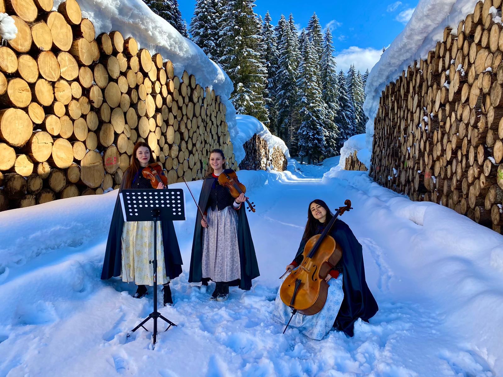 La grande e spettacolare foresta di Paneveggio ha rappresentato al meglio i boschi di Fiemme, e Massimiliano, in compagnia del dott. Mazzucchi esperto forestale, ne ha percorso i sentieri innevati fino al famoso ponte tibetano sospeso sopra il rio Travignolo, raccontandone i segreti e incontrando anche delle musiciste oltre che un ospite molto molto speciale di cui non sveliamo l’identità.
