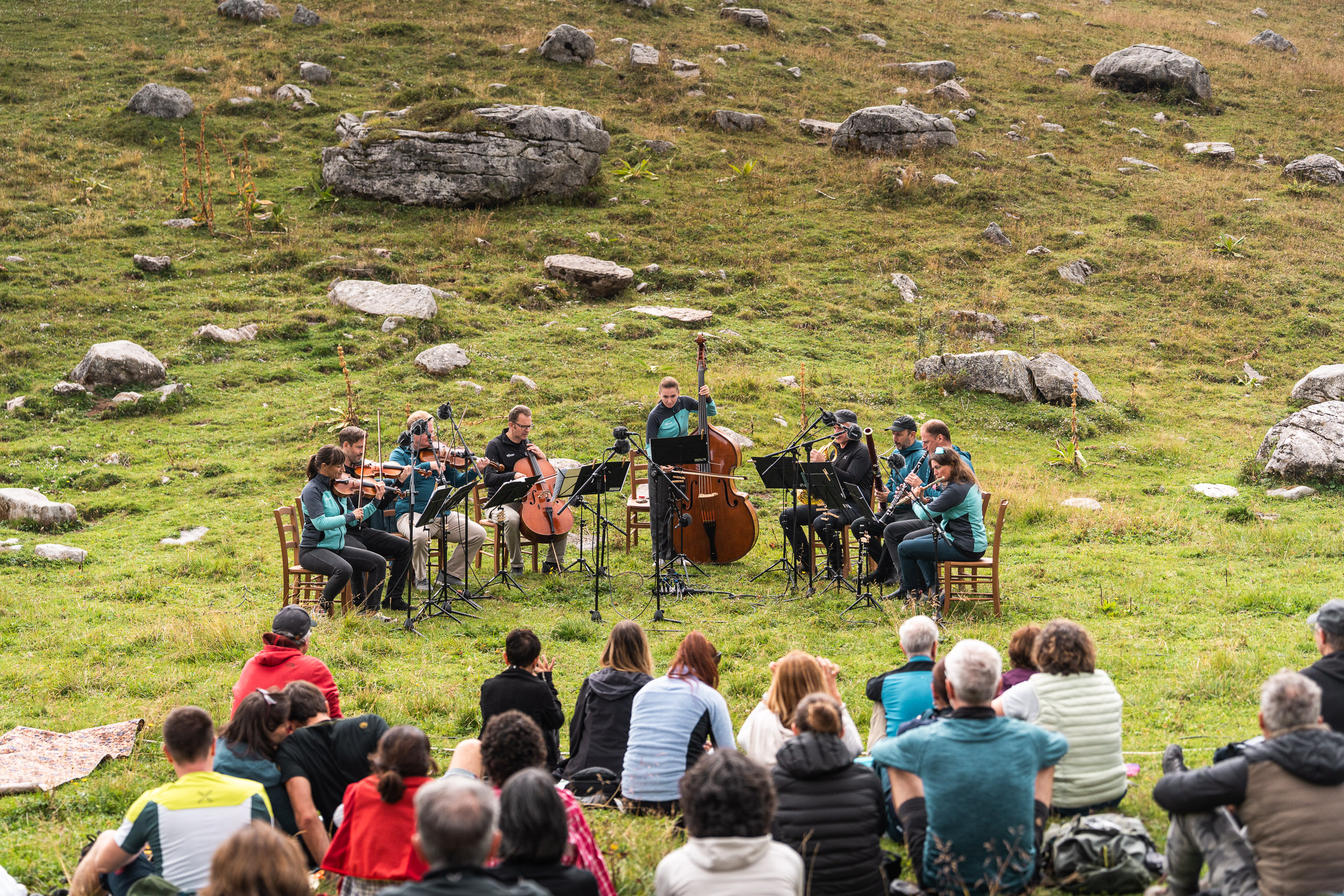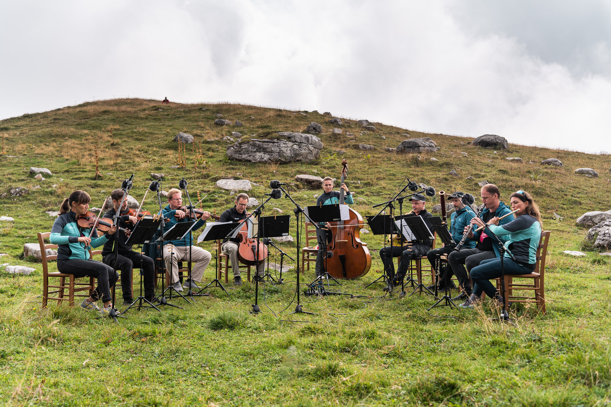 “L'emozione è più intensa qui con la natura che fa da perfetta cassa di risonanza", ha confidato ad un pubblico rapito il Teophil Ensemble Wien. Con rigore e perfezione, cifra stilistica di un ensemble composto da solisti e prime parti dei celebri Wiener Philharmoniker, hanno spaziato fra partiture di Strauss, da Overture zu Eine Nacht in Venedig a Winterlust, brani di Zierer, Stolz,Hellmesberger o Lehar ed una intensa Liebesfreud di Fritz Kreisler. Il sole che giocava con la nebbia hanno contribuito a creare un’atmosfera ideale, come di sospensione, e quale valore aggiunto la eco dei fischi di marmotte altrettanto gioiosamente partecipi.