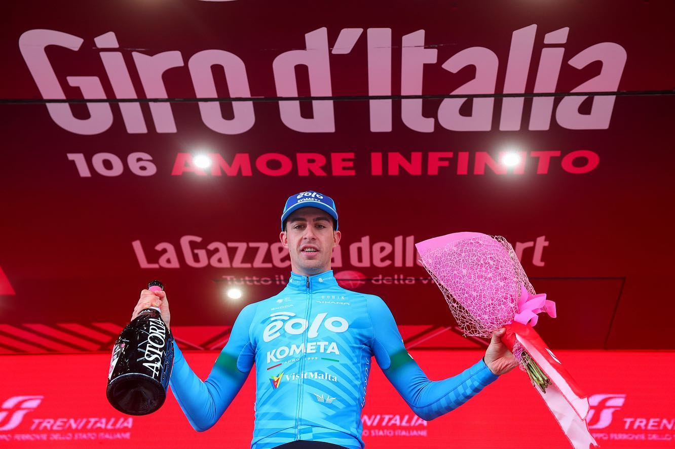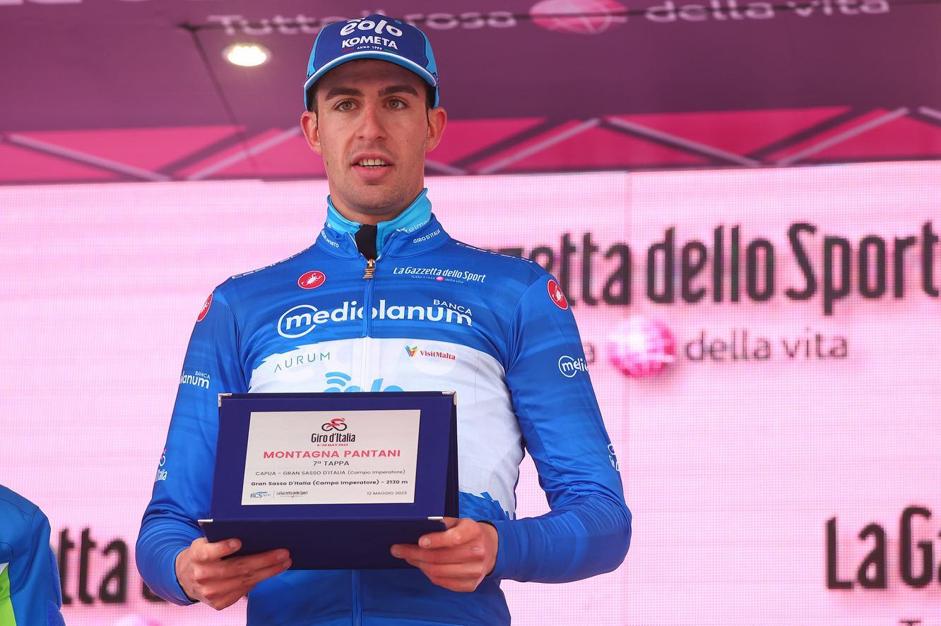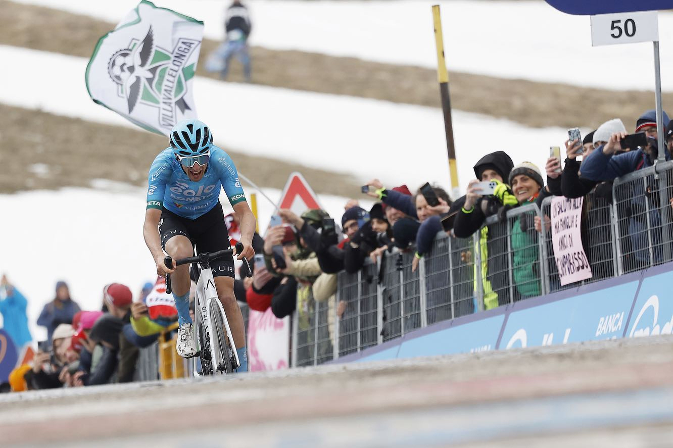 Davide Bais ha siglato l’impresa nel primo arrivo in salita del 106° Giro d’Italia, ai 2130 metri di Campo Imperatore, sul Gran Sasso, al termine dei 218 chilometri della frazione scattata da Capua, la settima della corsa rosa edizione 2023. Il classe 1998 di Nogaredo in forza al team Eolo Kometa ha coronato con la vittoria una fuga a tre nata al km 3 e condotta assieme a Simone Petilli (Intermarché Circus Wanty) e a Karel Vacek (Corratec Selle italia), battendoli nel decisivo sprint in salita.