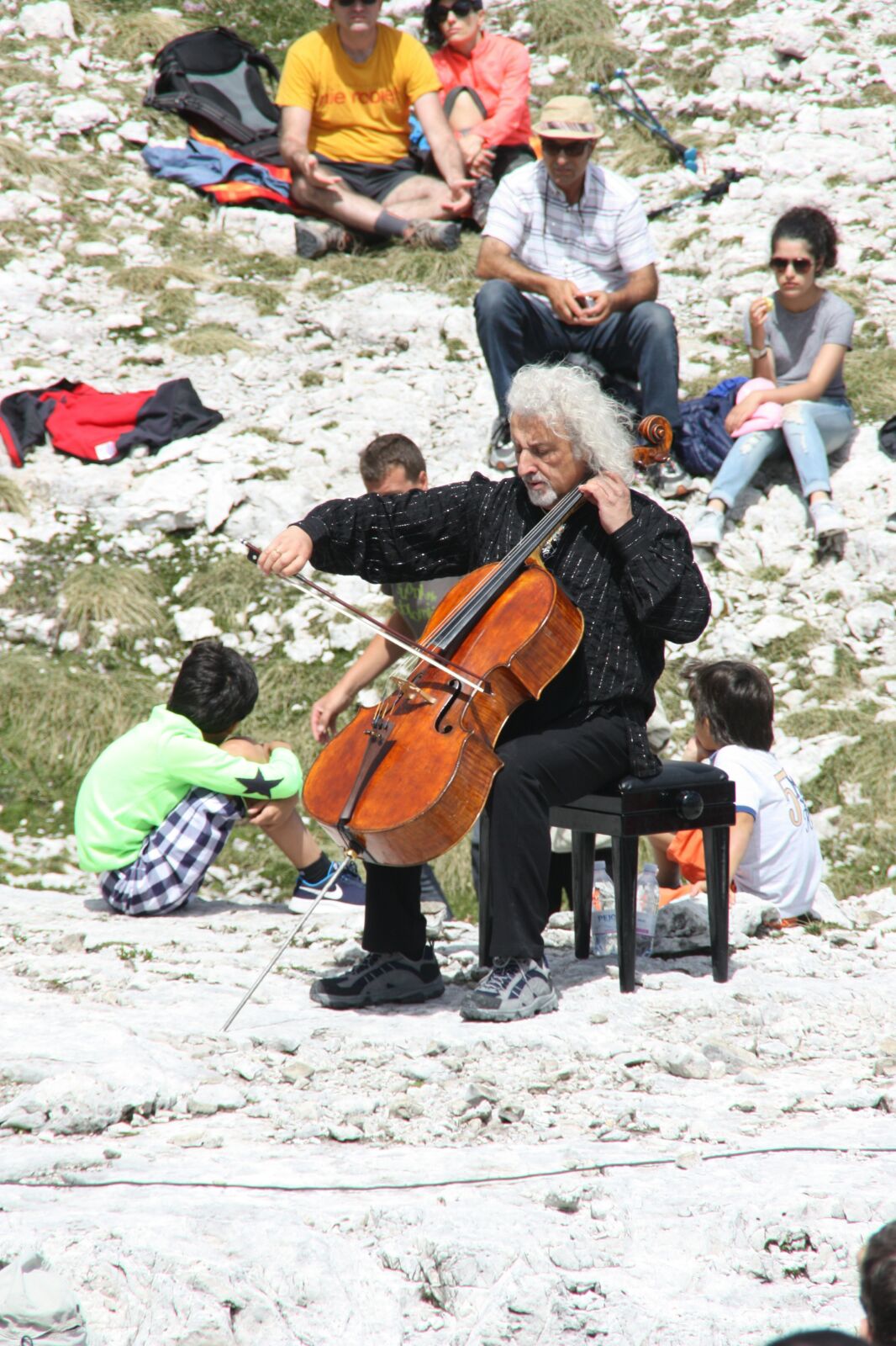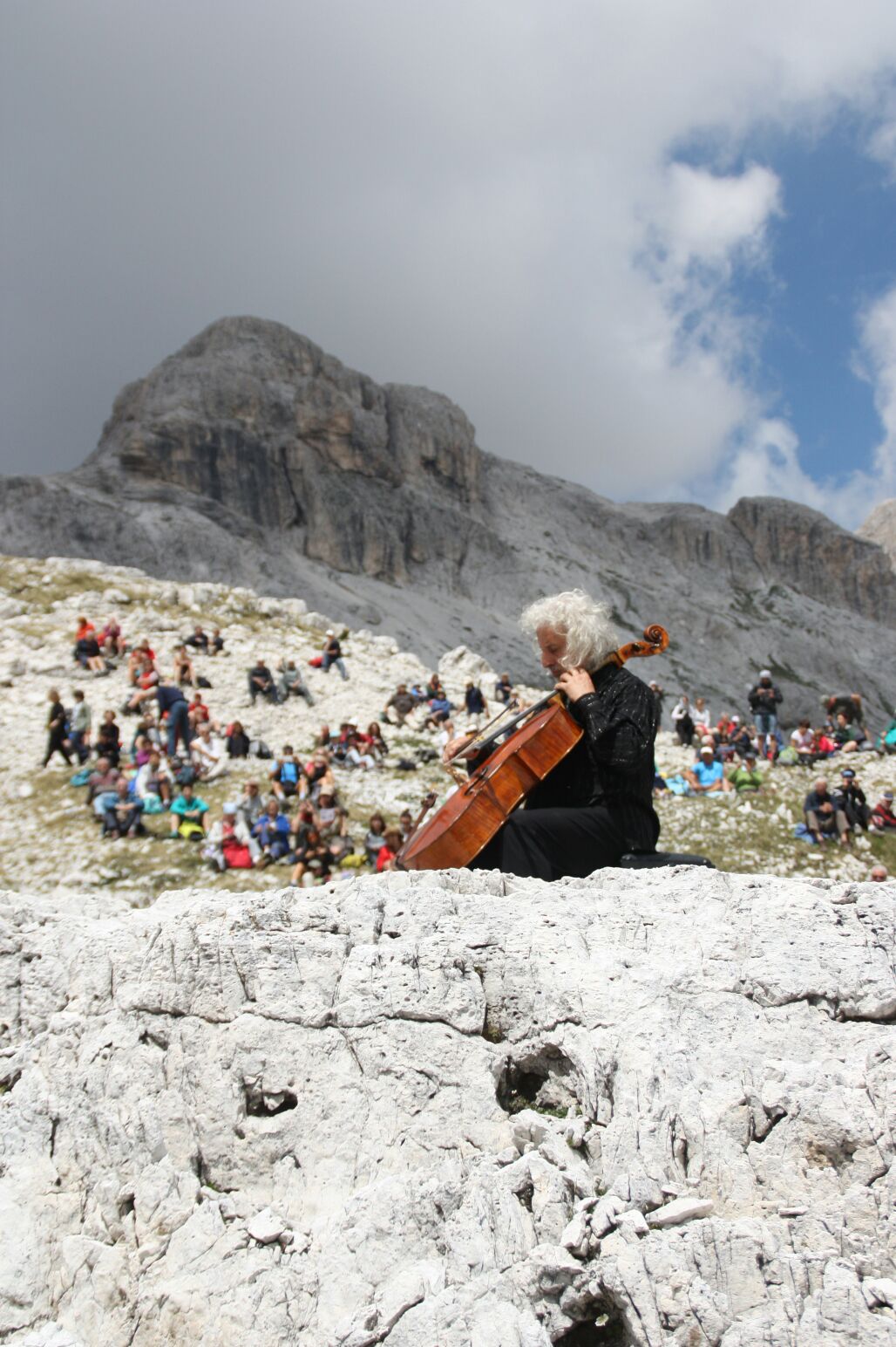 Maisky l'aveva già dichiarato "Bach è perfetto per un evento del genere. La sua musica si adatta ad ogni contesto ambientale", ma probabilmente non si aspettava di ritrovarsi tra immense architetture di pietra e la sua espressione stupita e ammirata è stata più loquace di un intero discorso. Poi è arrivato il tempo della musica con i sette movimenti delle due Suite, seguite in grande silenzio e attentamente da tutti i presenti. E se c'è una cosa che la musica di Bach riesce a trasmettere a chiunque si trovi ad ascoltarla nei pressi delle vette è la sua capacità di farsi tutt'una con le mille altezze e profondità, le conche, le vallette e le pareti verticali. Probabilmente molti dei presenti porteranno con sé oltre al ricordo della musica anche quello della chioma bianca e fluente del maestro, la sua aria concentrata, l'immagine dell'archetto che si muove veloce.