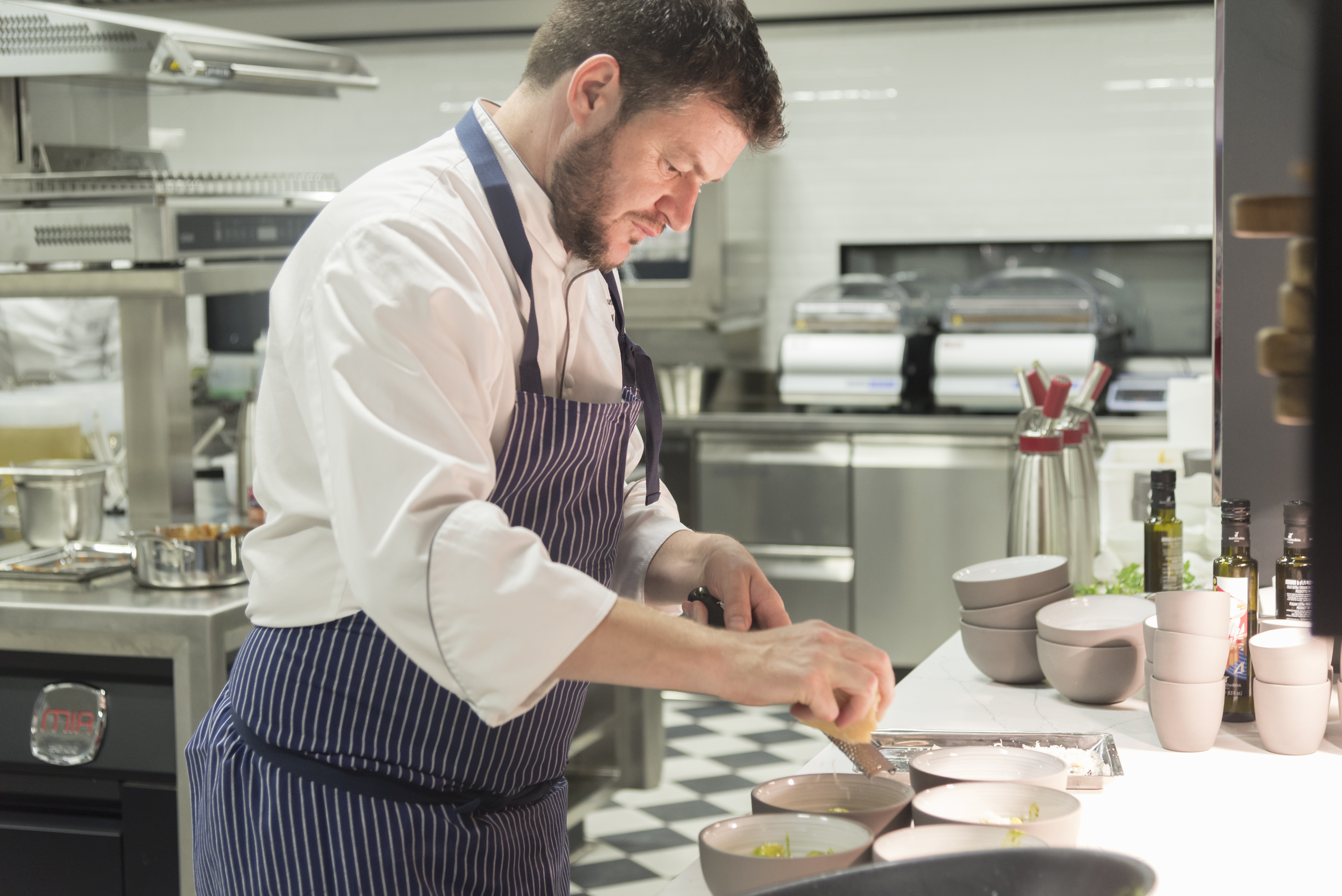 L’apertura del ristorante è prevista per il 22 ottobre 2019, ma nell’attesa lo chef ci ha descritto una ricetta che non mancherà al Mart: il suo piatto preferito, “le Chiocciole Monograno Kamut, salsa al trentingrana, tonno e caffè”, di cui Alfio parla appassionatamente come di un’interpretazione moderna del piatto che gli cucinava la madre nei giorni di festa: “Fin da bimbo sono stato abituato ad una cucina schietta di montagna, abituati com’eravamo a pochi ingredienti locali non serviva molto per stupirci ed il tonno all'olio aveva sicuramente un non so ché di esotico, di lontano. Così una domenica quando alle farfalle con grana, burro e salvia mia madre aggiunse qualche tocchetto di tonno fu davvero una sorpresa, un’emozione che è rimasta viva fino ad ora tanto da farmi riprendere in mano la ricetta e riproporla con i dovuti aggiustamenti che la professione e l’epoca contemporanea in cui viviamo mi hanno suggerito".