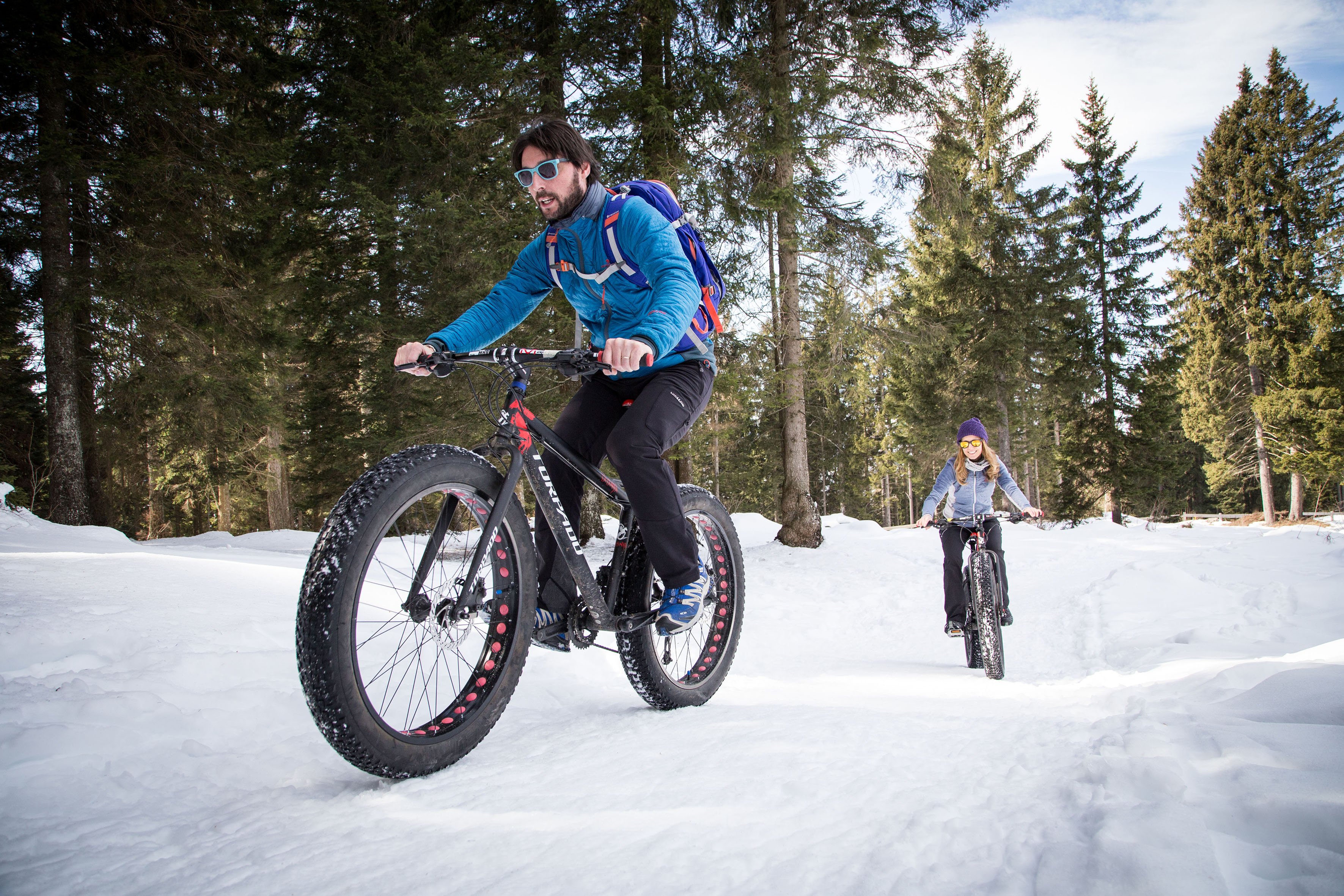L’alternativa alle racchette da neve sono i tanti percorsi per fat bike: con pneumatici e cerchi più larghi, queste speciali biciclette permettono anche al principiante di affrontare i terreni innevati con estrema facilità e perfetto controllo del mezzo, con la sensazione di “galleggiare” sulla neve.