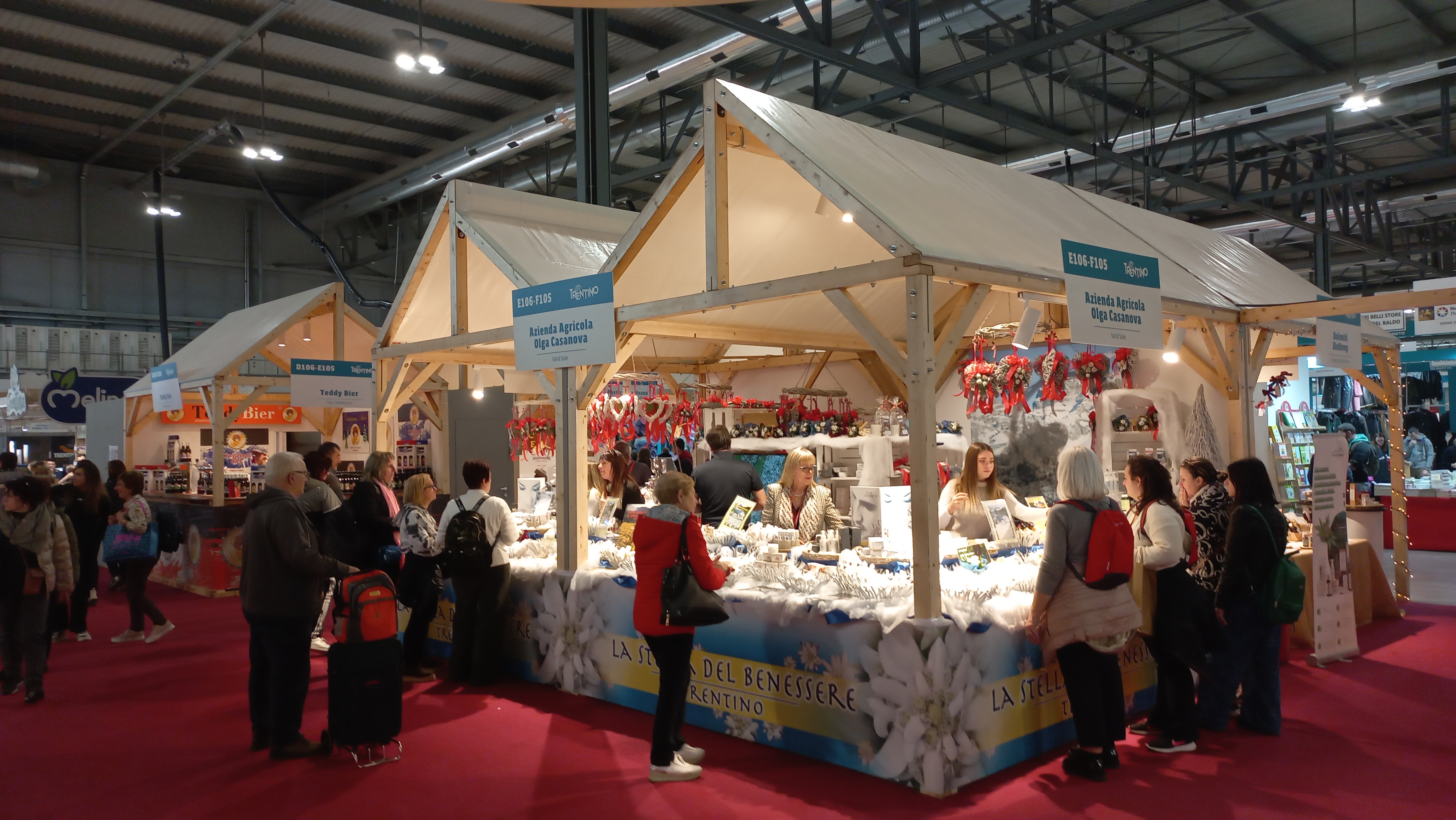 Lo stand del Trentino, uno spazio di circa 1.300 mq nel Padiglione 1, all’ingresso della Porta Est della fiera, curato da Trentino Marketing e Trentino Sviluppo in collaborazione con Associazione Artigiani e piccole imprese del Trentino e Servizio artigianato e commercio della Provincia Autonoma di Trento, accoglierà 35 aziende per un’ampia proposta di prodotti. Vi sarà anche uno spazio istituzionale per la promozione del territorio che vedrà, oltre a Trentino Marketing, due desk dedicati: uno allo Skirama Dolomiti Adamello-Brenta, con le proposte turistiche di tutti i suoi ambiti, e un secondo riservato alle APT Val di Fiemme - Val di Cembra e Val di Fassa.