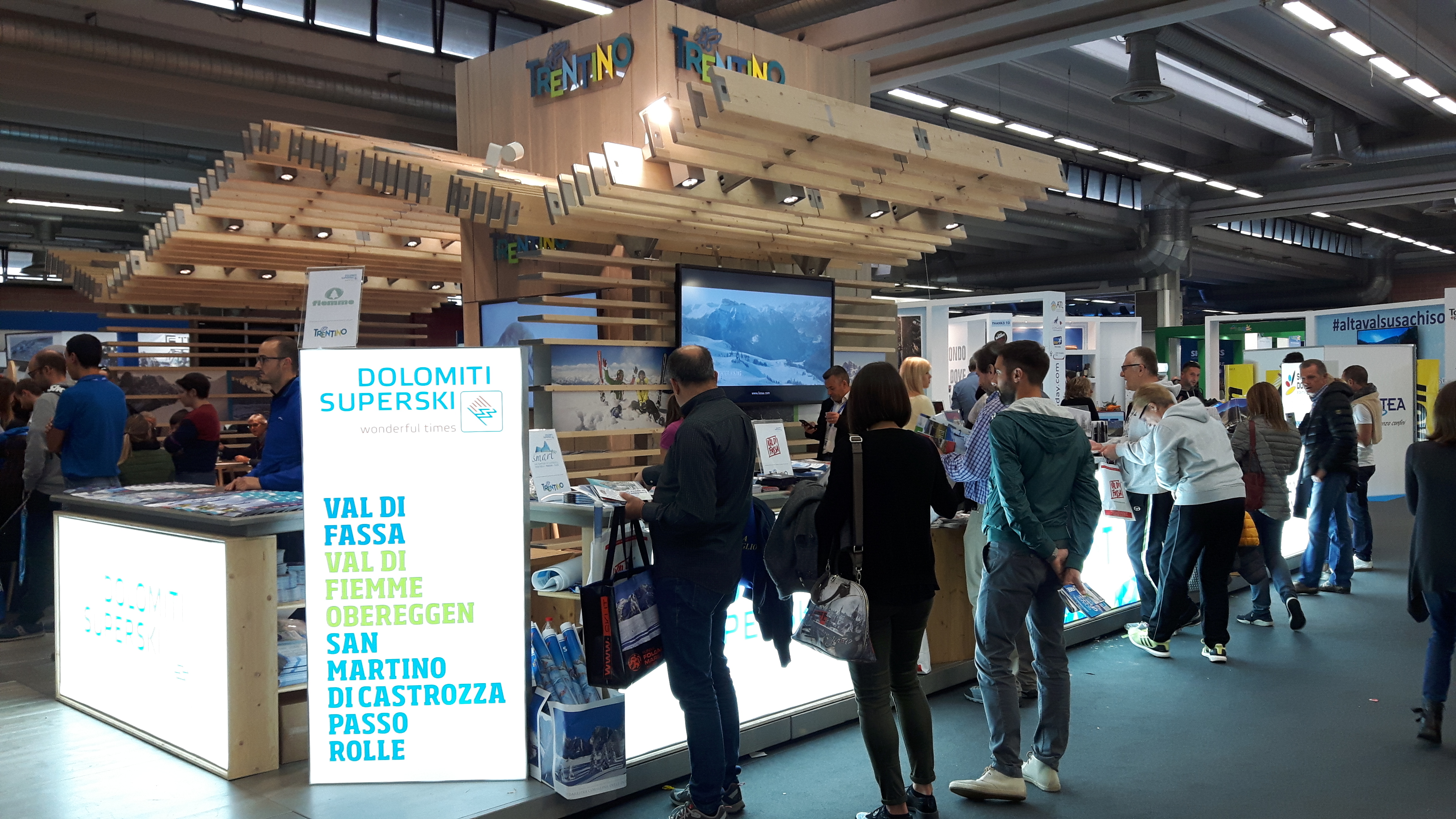 Nello stand curato da Trentino Marketing il pubblico ha apprezzato in particolare l'innovativa App "Trentino VR", per viaggiare nelle valli del nostro territorio grazie alla realtà aumentata, lo "ski simulator", e naturalmente le proposte degli ambiti inseriti nei consorzi Skirama Dolomiti Adamello-Brenta e Dolomiti Superski. La Val di Fassa ha presentato il Mondiale Juniores di sci alpino del 2019